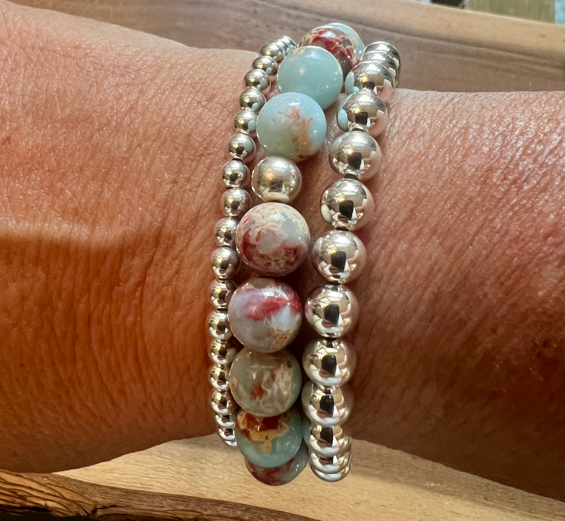 African Opal Jasper Bracelet Stack with Sterling Silver